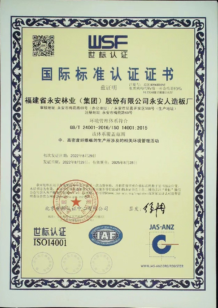 近日,福建省節(jié)能中心刊發(fā)報道——《綠色工廠典型案例丨福建省永安林業(yè)(集團)股份有限公司永安人造板廠》,現(xiàn)將報道全文分享如下——福建省永安林業(yè)(集團)股份有限公司永安人造板廠(以下簡稱永安人造板廠)成立于1998年2月,是福建省永安林業(yè)(集團)股份有限公司旗下分公司。永安人造板廠是以人造板生產和銷售為主的森工企業(yè),也是國家高新技術企業(yè)。2021年永安人造板廠10項纖維板產品獲得福建省綠色設計產品榮譽稱號;2022年永安人造板廠獲得福建省綠色工廠榮譽稱號;2024年永安人造板廠獲得國家級綠色工廠榮譽稱號。一、人造板行業(yè)領先企業(yè)永安人造板廠一直致力于節(jié)能減排綠色發(fā)展轉型,先后通過了標志產品合格認證和產品安全認證、I型中國環(huán)境標志產品認證、ISO9001:2015質量管理體系認證、ISO14001:2015環(huán)境管理體系認證、ISO45001:2018職業(yè)健康安全管理體系、ISO50001:2018能源管理體系、FSC森林認證,并獲得中國木地板行業(yè)市場影響力“十大品牌”稱號;榮獲纖維板類首批“國家免檢產品”、纖維板類首批“中國名牌產品”稱號;永林藍豹地板、基材雙雙獲得“出口免驗”榮譽,成為中國木地板行業(yè)首家獲此殊榮的地板品牌。二、技術創(chuàng)新填補行業(yè)空白永安人造板廠現(xiàn)擁有17項發(fā)明專利技術、12項實用新型專利技術,并參與制定了7項國家標準,其中“一種低密度纖維板的制造方法”獲得國家發(fā)明專利和福建省專利獎,高強度輕質纖維板研發(fā)項目獲得三明市科技進步獎和福建省科技進步獎。2022年6月工廠研發(fā)申報的《防霉低密度裝飾線條專用纖維板開發(fā)及產業(yè)化項目》是福建省林業(yè)產業(yè)科技技術創(chuàng)新的唯一入選項目,該技術填補了林業(yè)行業(yè)空白,被列入2022年福建省技術創(chuàng)新重點攻關及產業(yè)化項目。工廠有E1、E0、F4星、無醛板以及“CARB/EPA”、FSC認證等產品。在人造板木片水洗及其污水處理循環(huán)使用方面,突破性地解決了MDF行業(yè)內的一大難題,在纖維板行業(yè)率先實現(xiàn)了污水零排放,使木片水洗及其污水處理技術在行業(yè)內處于領先水平。三、注重安全、綠色、低碳、環(huán)保近年來,永安人造板廠實施多項節(jié)能技術改造,生產效率和能源使用率顯著提升。如對能源工廠主引風機和干燥風機進行變頻改造,改造后節(jié)電顯著;熱磨有機木塞水全部經處理后廠內綜合利用,實現(xiàn)了工業(yè)廢水的零排放;砂光粉、板邊條、廢纖維等固廢綜合資源利用,2023全年資源綜合利用6598噸;在廢氣排放減量化改造投入600余萬元,進行干燥尾氣除塵系統(tǒng)改造項目,進一步降低干燥尾氣顆粒物的排放量;2023年工廠投資650萬元,開展“高效節(jié)能薪材上料系統(tǒng)與板坯預加熱系統(tǒng)節(jié)能改造”,年節(jié)約1579噸標煤,被福建省工業(yè)和信息化廳列為2023年省工業(yè)重點節(jié)能改造項目。各項環(huán)保排放指標、能耗指標等均優(yōu)于國內行業(yè)先進值。四、優(yōu)化能源結構,建設光伏電站作為2023年投運的4.25兆瓦分布式光伏一期項目的“姊妹篇”,光伏二期項目的加入使永安人造板廠光伏總裝機容量躍升至9.35兆瓦,年發(fā)電量約1000萬千瓦時,可滿足廠區(qū)20%以上的生產用電需求。兩期項目形成“屋頂+空地”的立體發(fā)電網絡,預計每年可節(jié)約標準煤約1230噸,減少二氧化碳排放近8500噸,大幅降低永安人造板廠的能源成本,顯著提升綠色能源在能源體系中的占比,開啟“能源低碳化”的實踐模式,為傳統(tǒng)制造業(yè)綠色轉型提供了實踐經驗和成功案例。五、生產廢水循環(huán)回用零排放永安人造板廠年產21萬立方米中密度纖維板生產線木片水洗工段所產生的廢水,經過全封閉循環(huán)處理系統(tǒng),處理后的污水100%回收利用,實現(xiàn)廢水零排放,改變了傳統(tǒng)污水處理后直接排放的方式,有效減輕環(huán)境污染,該項技術在國內同行處于領先水平。未來,永安人造板廠將繼續(xù)貫徹落實國家關于生態(tài)文明建設的決策部署及“碳達峰、碳中和”的戰(zhàn)略發(fā)展要求,秉持創(chuàng)新驅動、綠色引領的理念篤定前行。企業(yè)將進一步深挖節(jié)能降碳潛力,積極實踐上市公司社會責任,將綠色低碳發(fā)展和企業(yè)可持續(xù)發(fā)展貫穿始終,為企業(yè)高質量發(fā)展賦能。